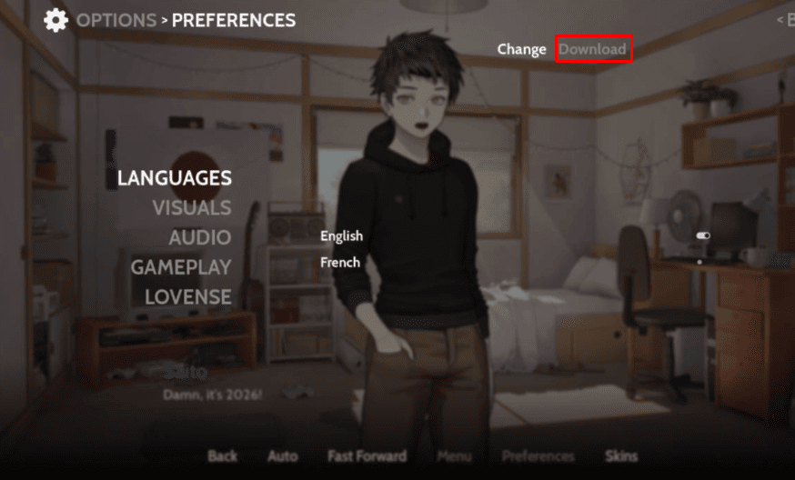 OBS: O sistema desse jogo é um pouco diferente, ele não irá começar direto em Português, então é necessário ir nas configurações, e clicar em Donwload (como na imagem abaixo) e escolher “portuguese”, aí sim você irá poder escolher o idioma português.